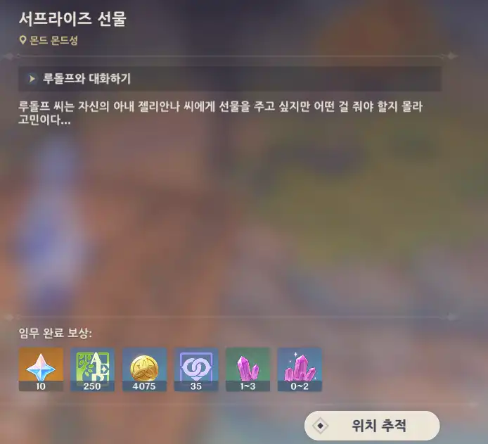 | 483 | 스토리 비경 내 상자들 : 부족 견문 임무 (샘물이 돌아가는 곳) 3막 2 | 강낭땅콩136 | 2024.09.08 | 6697 | 7/0 |