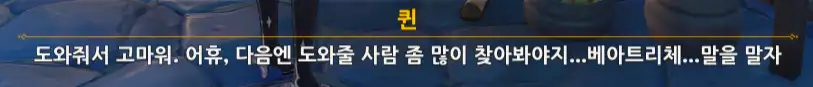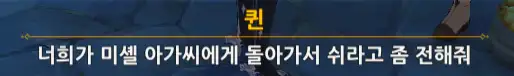 가기 전에 퀸에게 말을 걸면 다음과 같은 대화문이 출력된다.