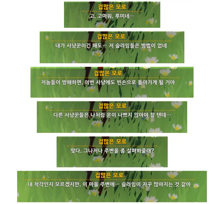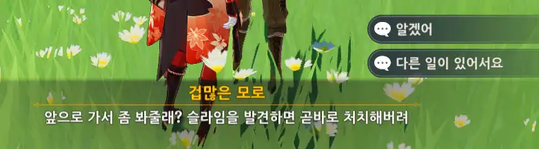 슬라임을 처치한 후 모로에게 가서 대화를 하면 된다.
