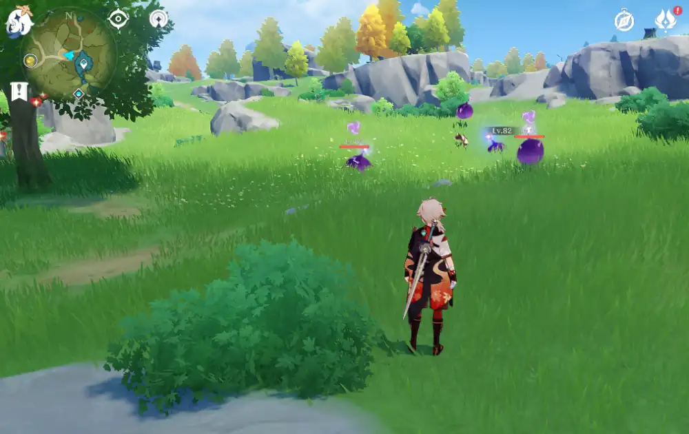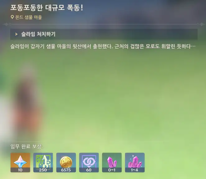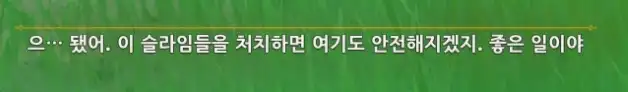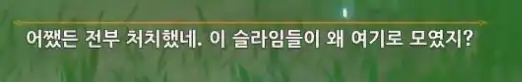 슬라임을 모두 처치하면 퀘스트가 완료되며 페이몬이 뭐라고 한다.