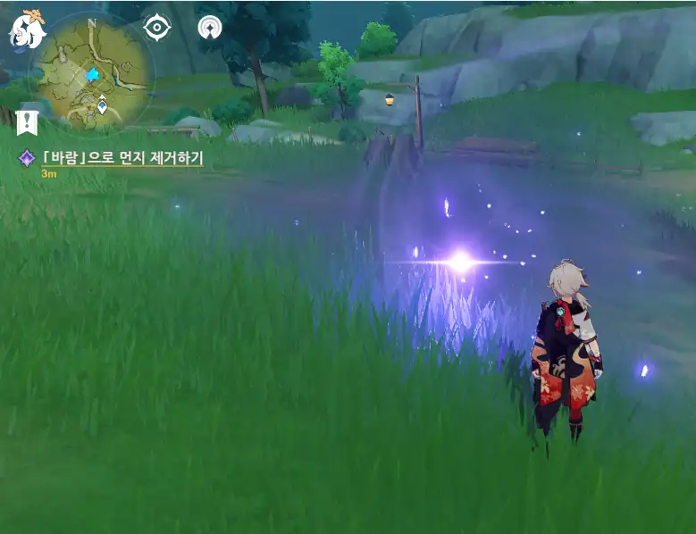 페이몬의 말대로 바람 원소 공격으로 먼지를 타격하면 퀘스트가 진행된다.