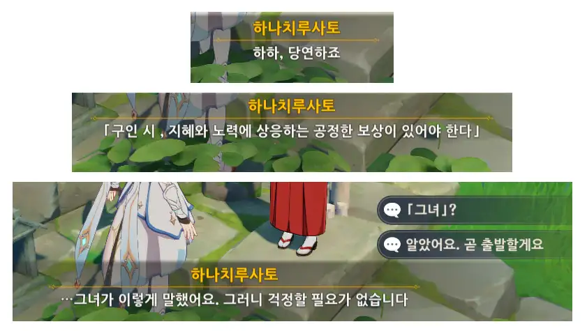 대화가 끝나고 다시 하나치루사토에게 말을 걸 수 있다. (아마 상시인듯)