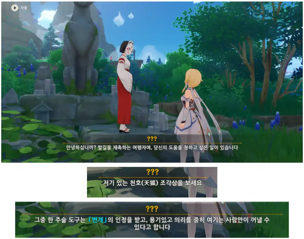 획득한 후, ???에게 다가가면 대화가 시작된다.