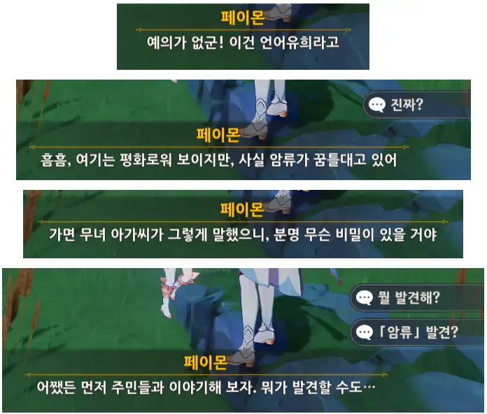 표시된 지역에 다다르면 화면 전환 후 페이몬이 말을 걸어온다.