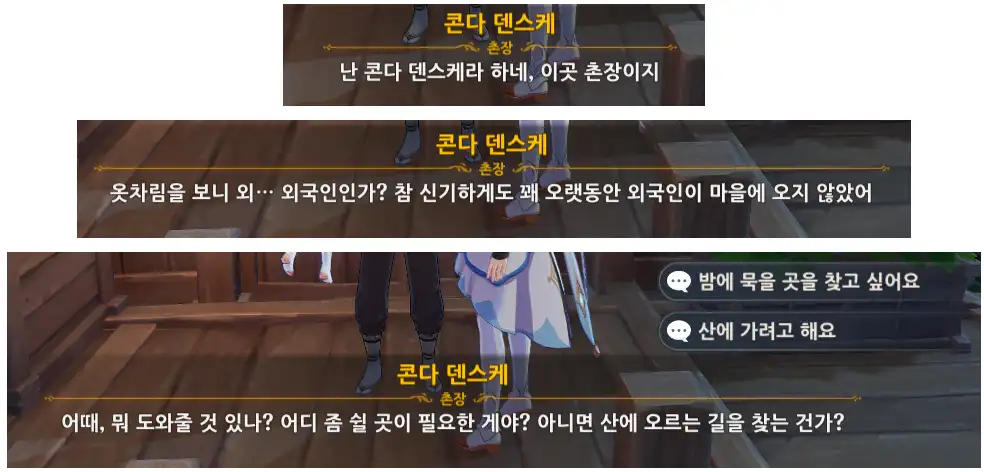 대화를 마친 후, 표시된 구역 내의 NPC들에게 말을 걸면 퀘스트가 진행된다.