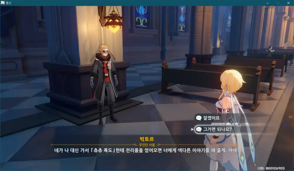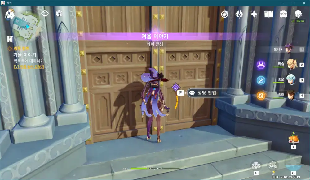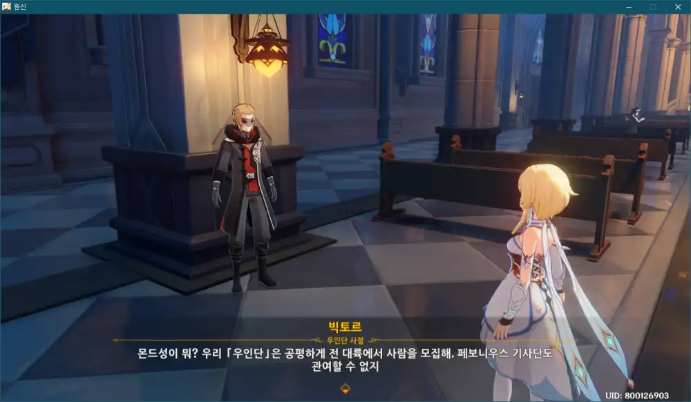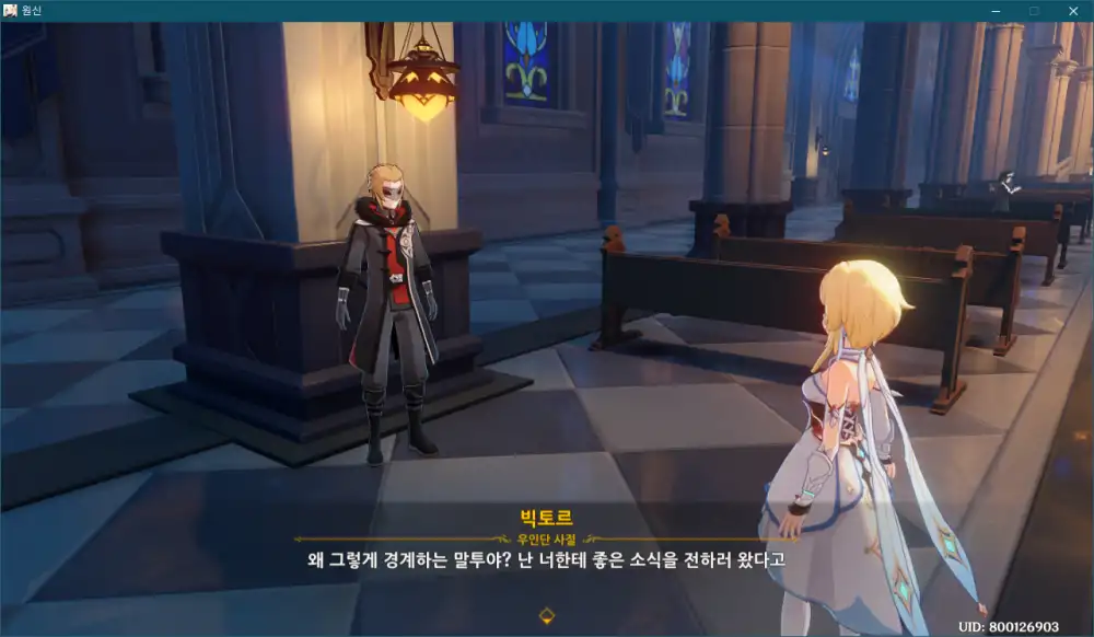 몬드성 종탑 워프 포인트타고 페보니우스 성당에 진입하면 문앞에 빅토르가 대기하고 있다.