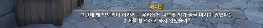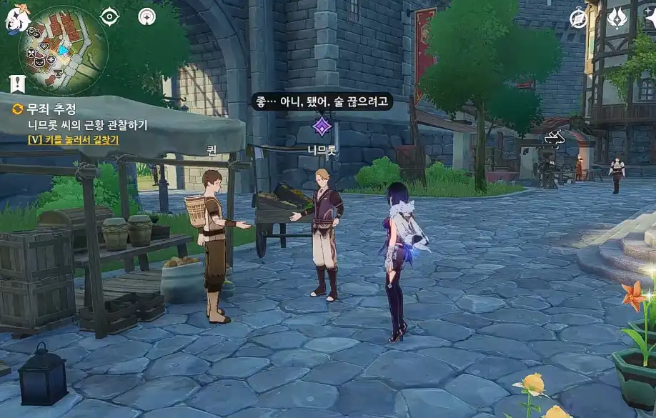 +) 처음에 성당 앞 수녀 '빅토리아'와 대화한 후, '니므롯'을 찾아갈 때 술집이 아닌 과일 가게 앞으로 갈 경우