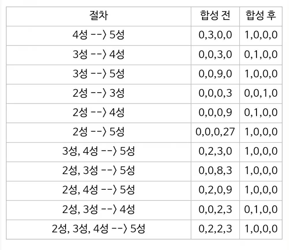 참고) 합성 전, 후의 배열은 5성에서 2성 순입니다.