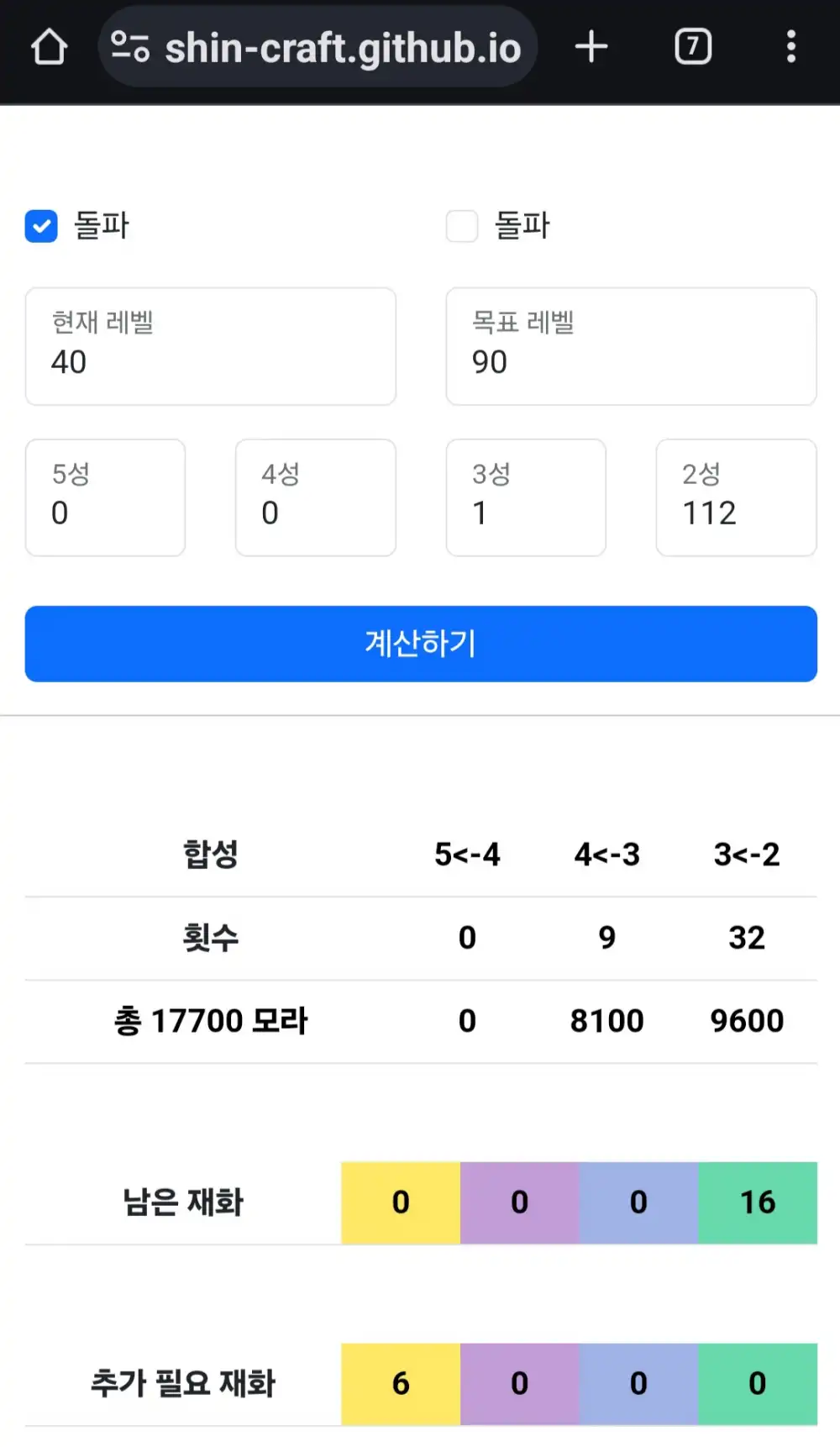 안녕하세요. 예전에 육성 계산기 만들던 유저입니다.