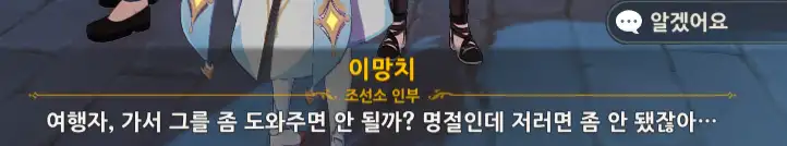 이망치와의 대화를 끝낸 후 옆의 왕반자에게 간다.