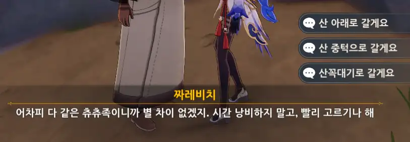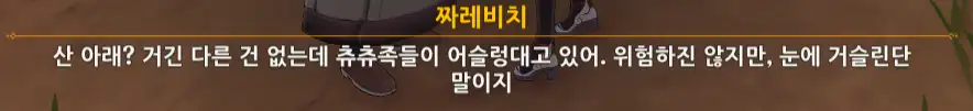 안내된 위치에서 츄츄족을 다 잡고 다시 짜레비치에게 대화를 건다.