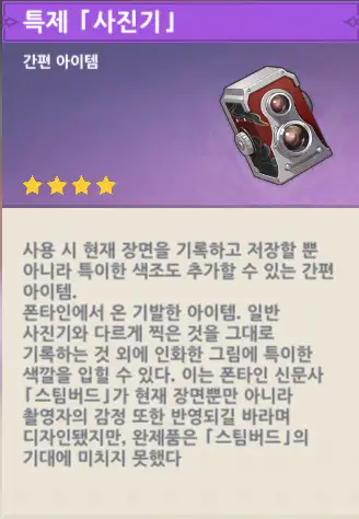 퀘스트 보상으로 받은 [특제 사진기]
