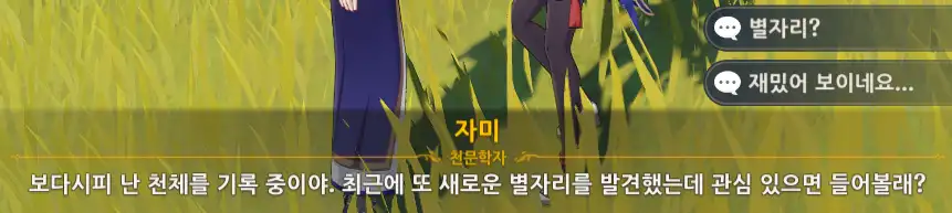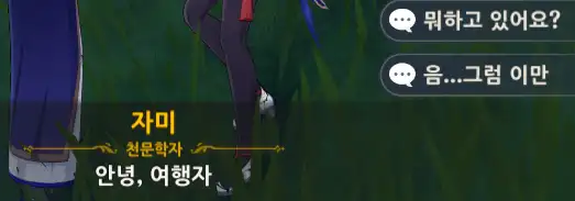 이번에는 자미에게 말을 걸어보자