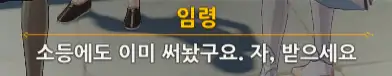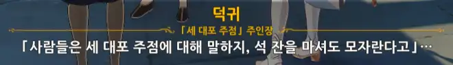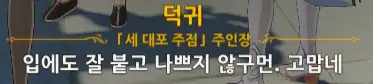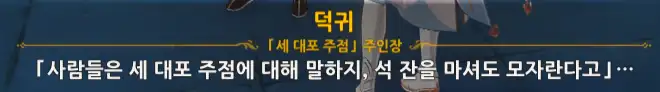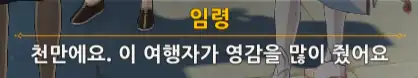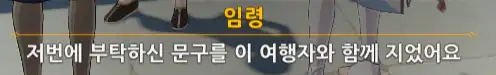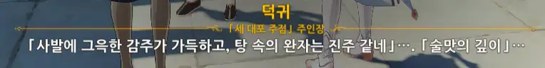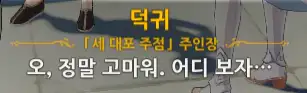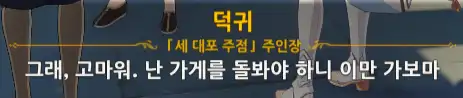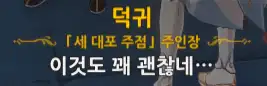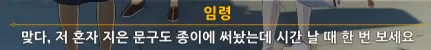 +) 퀘스트 진행 도중 덕귀에게 말을 걸면 임령이 처음에 쓴 글귀에 대한 반응이 나온다.