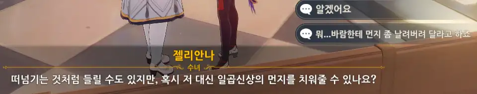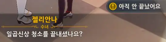 청소하러 가지 않고 다시 대화를 걸면 다음과 같은 말들이 출력된다.
