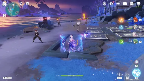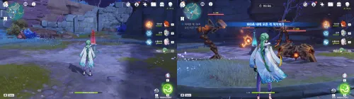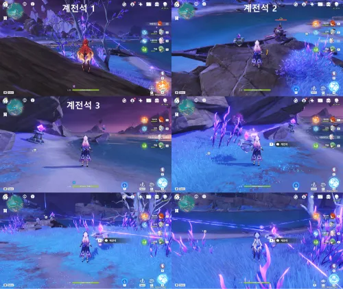 아무 원소 활 캐로 주변의 풀 씨앗 활성화 후 과녁을 명중하면 두 번째 부터 네 번째 과녁이 움직입니다! 움직임이 멈추고 나서 과녁을 쏘세요! 4번 명중하면 되요! |