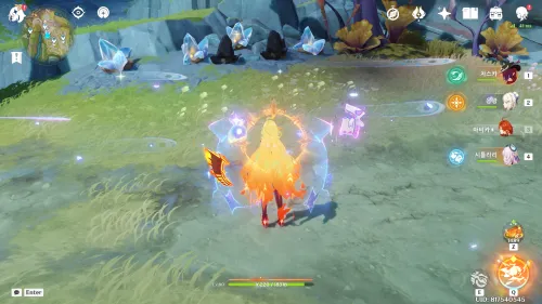 오후 12시로 시간을 변경하면 비가 내려서 물방울들이 존재를 해요! 오전 6시 넘어서 활 캐로 원소 공격을 해버리니까 도전실패로 떠서 오후 12시로 시간변경을 해서 일반 공격으로 9개의 물방울 터뜨리고 클리어 했어요! |