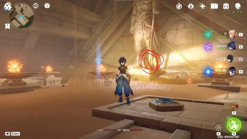 주변에 풀 씨앗 활성화 가능한 곳이 있어요! 과녁을 초록 불빛 선을 따라서 순차대로 과녁을 4번 명중하면 평범한 보물상자 등장합니다! |