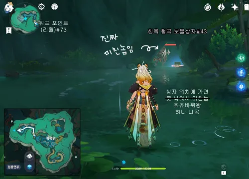 위치때문에 헷갈릴수잇는데 지상쪽 입구에 있는 상자 아님... 동굴안으로 좀 들어와서 진행해야 먹는 상자임 |