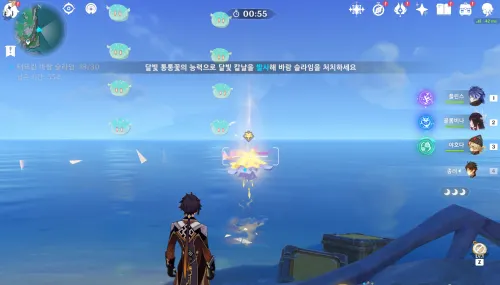 베댓 뭔말인가 했더니 사진에 보이는 저 꽃에 달빛 칼날 명중하면 공중으로 달빛 칼날을 발사해서 바람 슬라임 다 터뜨리더라... |