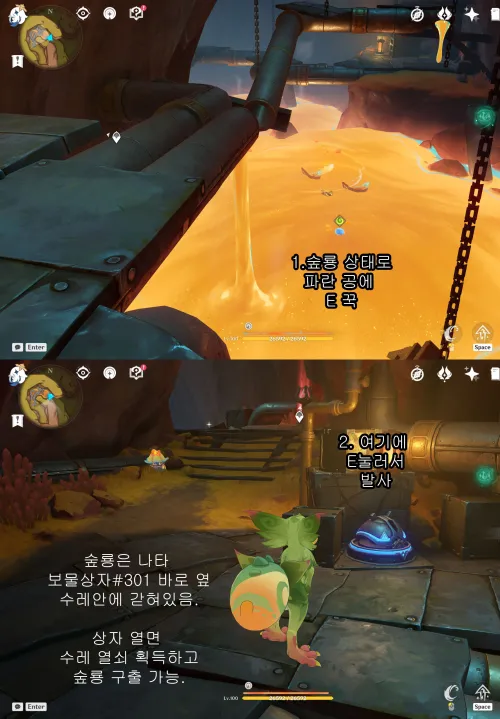 마지막 단계에서는 노란 염료를 들고 석상 타고 이동이 됩니다 |