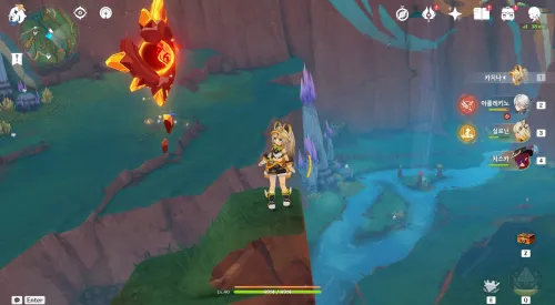 깃룡으로 변신하고 옆에 보이는 진입으로 불의 눈동자 먹은 후 상자쪽으로 수직 낙하 하면 됩니다. |