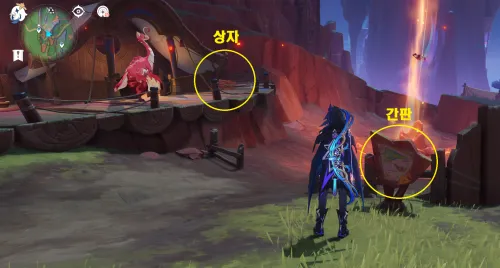 뒤쪽 명룡 탄다음에 1) 아래 광석 먹고 2) 날아와서 눈동자 먹은 다음 3) 능력으로 돌주워서(돌 옆 기둥 위에 파랑색 스캔)) 중간에 있는 돌 균형 맞춰서 상자 먹기 |