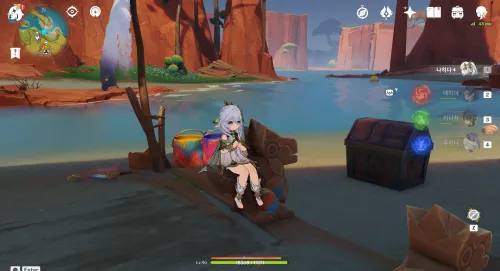 왼쪽 부근에서 몹 사냥해서 노란색, 초록색 구하기 / 튜브 보이는 거 명룡으로 빼내기 / 오른쪽 파란 문양 명룡으로 인식하고 갈고리 위에 설치하기. 3개 다 끝내고 명룡 빙의 해제한 상태로 색깔 있는 매니투들 근처 가면 끝. 매니투 27 28 29 참고 |