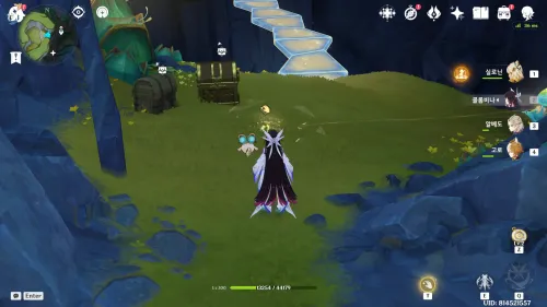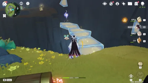 근처 만드라고라먹고 홀드조준으로 크리스탈구조물때리면 빛이차오르는데다차면꽃생김 |