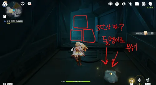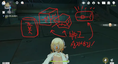 후반에 '보물상자 조사하기' 퀘에서 철전 2개 찾을때 먼저 위쪽에 상자 하나있고, 아래쪽에 하나 있는데 아래쪽 조사누르면 갑자기 몹 나오니까 준비 조금은 하고 가야함. |