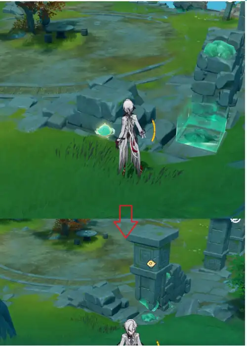 아래 사진 2개 발판이 같이 있는 곳에 큰 잔해 하나 작은 기둥 하나 놔두면 됨 |