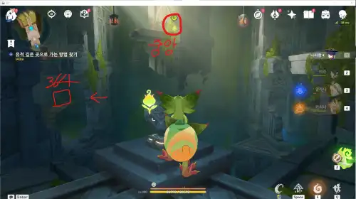 첫 번째 레버 바라보고 바로 위로 산룡 e스킬 써서 발판 만들면 바로 보임 |