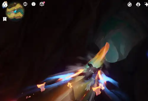 왼쪽 동그라미 F눌러서 작동하면 사진에 있는 화살표처럼 닫혀있던 문이 열립니다 (불의 신의 눈있는곳이랑 같은곳) |