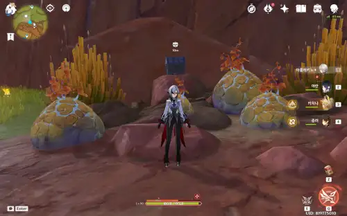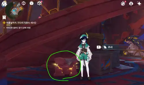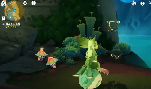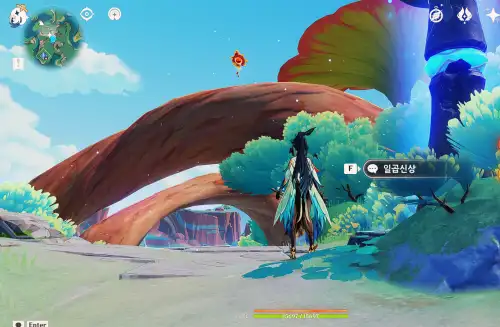 빨간 원 부분에 노란색 빛나는 부분을 메아리아리 캐릭or산룡으로 건들고 위로 올라가서 진입 클릭하고 올라가기 |