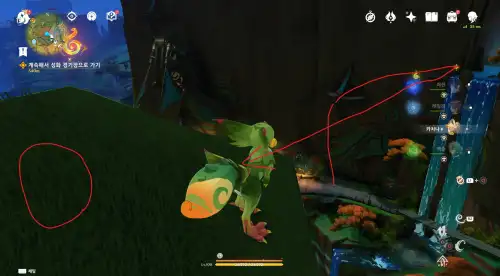 해당위치에 응축결정이 있는 바위가 있음. 바위부시면 몹하나 나오고 그거 잡으면 상자 나옴. 전 카치나로 바위 부심 |