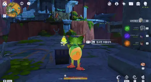 근처에 있는 산룡으로도 가능해요 대충 위치에 E써서 땅에숨은뒤 마우스 좌클하다보면 상자랑 모라상자 하나 나옴 |