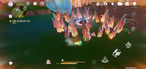불의 신의 눈 [#위치태그] 먹을때 물슬라임 4마리 나옴. 걔네 처치하면 윈드필드 생성됨. 그거 타고 쭉 올라와서 이쪽으로 날라오면 됨. |