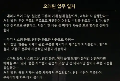 (문학 작품인 듯하다. 책을 펼치자 글자가 빼곡한 종이 몇 장이 삐져나온다. 실망스럽게도 문학을 분석한 내용이다···. 아카데미아 학생들 수준만큼 형식이 갖춰져 있진 않지만, 사막인들이 굳이 시간을 내서 이런 지루한 책을 봤다는 게 놀랍다. 표지 하단에 아카데미아 도서관의 문양이 보인다···. 밀수된 종이책 중 하나인 게 분명하다) |