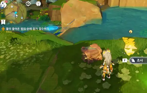주변에 있는 매니투 기믹 3개 다 하시고 카치나 스킬 꺼내면 움짤처럼 이펙트 나오면서 모라 상자 획득 가능해요 |