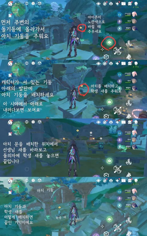 발판을 아무 캐릭터나 밟으면 대왕연꽃이 생겨요, 그 자리를 안 벗어나면 안 사라지니까 편하게 하시면 돼요. 연꽃 3개 자리 중앙에 대왕연꽃을 놓고, 연꽃 2개 자리에서 회수하면 깨져요 근데 바로 안 깨지면 연꽃 2개의 가운데로 조금만 움직여 보세요, 대왕연꽃 회수 후 지속시간이 매우 짧아서 재빠르게 움직여주셔야 해요 |