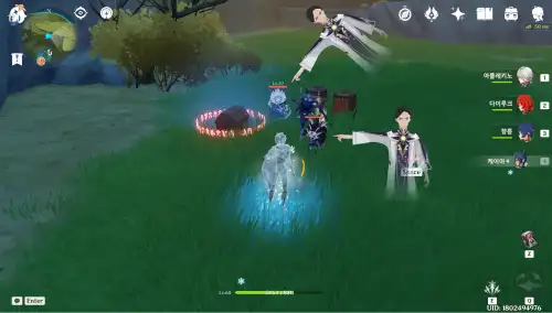 움직이는 애랑 가까운 애 사이에 연꽃잔 둠 —> 반대쪽 두개 있는대로 가서 선력으로 끌어당김 —> ㅈㄴ 뛰어서 다른 한개 밝히면 끝 |