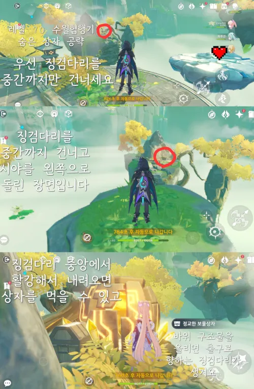 한 번에 쭉 내려가도 되지만 [#위치태그] 상자와 123 눈동자를 활강하여 먹을 수 있으니 참고하세요 |