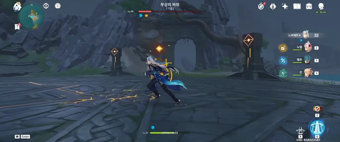 1번 기믹을 발동하면 화살표가 가리키는 방향을 보면 빛기둥이 나오기 때문에 그대로 따라 가면됨 |