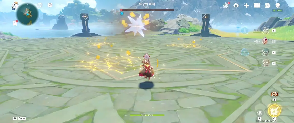 구로노스님 말대로 무지갯빛 투어 추가되면서 기믹, 쪼개진 돌들 다 사라진듯 // 그래서 그냥 공략글 중 장신캐로 눈동자 위치 밑에 갔을때 맞춰서 점프+공격(낙공) 빠르게 눌러서 먹어버림 뇌절 싀바 |