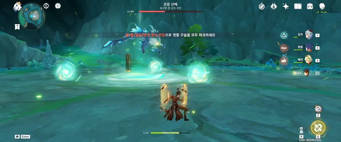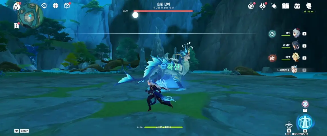 나각푸종으로 패턴 나오면 도망가면서 깻어요. 조심해야 할 패턴은 앞으로 물구슬5번 날리기(피하기 쉬워요) 앞으로 물구슬3개뱉기(애매하게 피하기힘든데 종려쉴드로 버티기는 가능)물쉴드 바닥틱뎀(쉴드 무시하고 직방으로 들어와요 힐캐릭 두고 멀리서 치고 빠지기 추천) 앞에 구슬던지기는 하기전에 기모으니까 기모으는거보이면 바로 피하기 화이팅! 끝나면 빛들어오는 언덕에 5악장 악보 있으니까 챙겨가세요 |