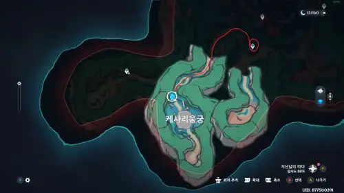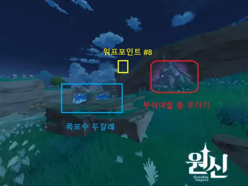 바닷물 속에 있으며, 한운 3단 점프후 수직 낙공으로 먹기 가능 |