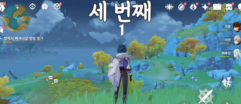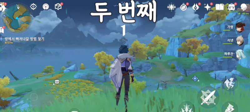 저처럼 컨트롤이 익숙치 않고 비행 캐릭터가 없는 분들을 위한 버프 캐릭터 일람 : 비행 스테미터를 덜 닳게 해주는 엠버, 낮 이동속도를 높여주는 가명 혹은 밤 이동속도를 높여주는 로자리아. 그리고 바람캐릭터 아무거나 두 명 데려오면 바람공명으로 이동속도가 빨라집니다 있는 캐릭터를 최대한 활용합시다 |