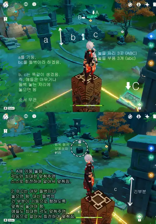 옥고리 좌우 사용처 : 보물상자 @218 ( https://genshin.gamedot.org/?mid=genshinmaps&type=wiki&id=%EC%B9%A8%EC%98%A5%20%ED%98%91%EA%B3%A1%20%EB%B3%B4%EB%AC%BC%EC%83%81%EC%9E%90&list=606eb73f49748&point=99e896d2-bda2-a0e6-ac42-3c001ede805c ) 안쪽 녹색 고리 떠 있는곳 |