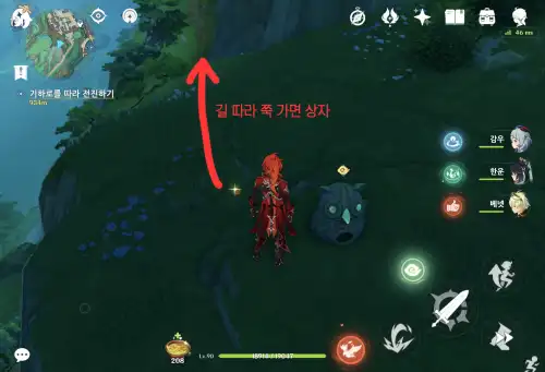 상자 바라보고서 오른쪽(미니맵 1시 방향)으로 가고 솔방울 주워먹다보면 보일 거임 |