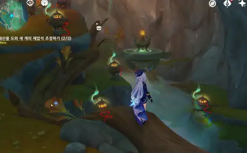 옥솥 4개 활성화 / 두개는 상호작용후 해야되니 맵 주위 자세히 봐야 합니다. |